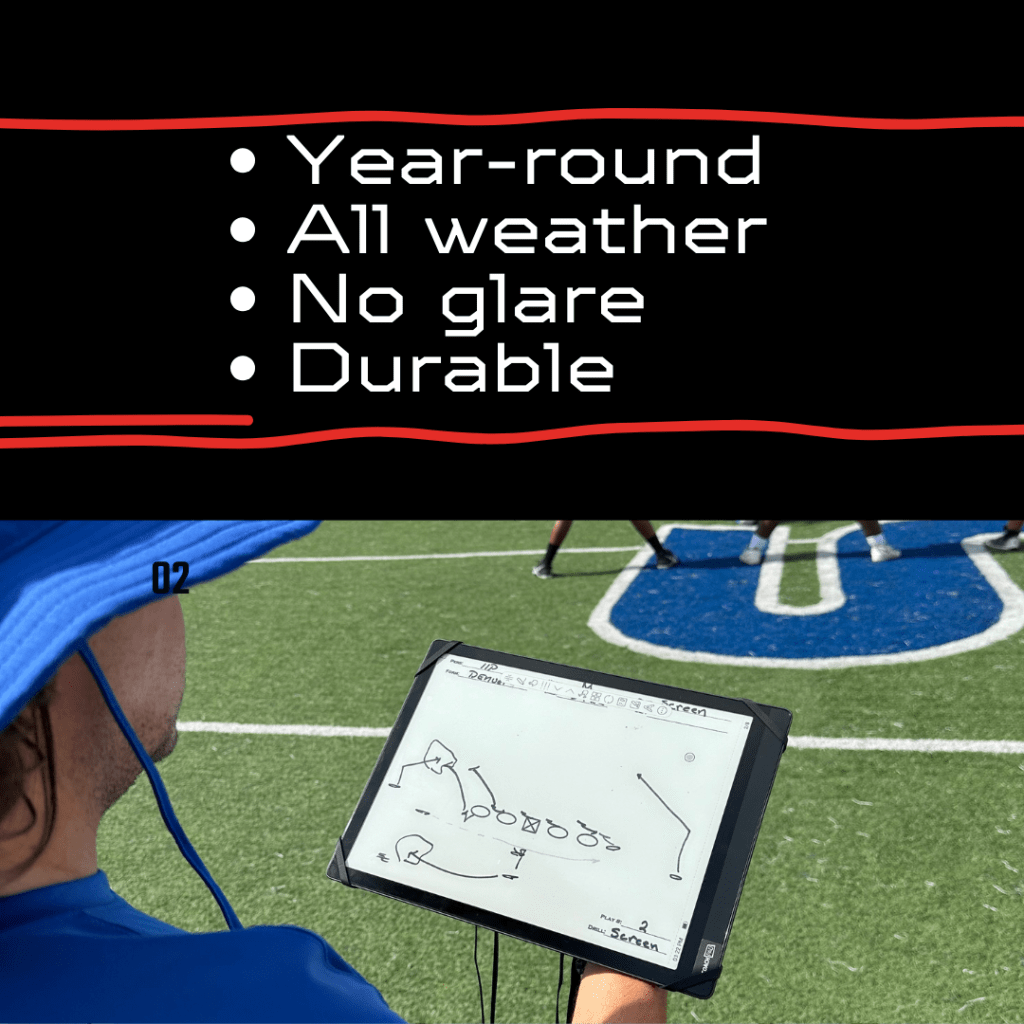 About The Coachpad: The Coachpad is a unique product that provides the capabilities and capacity of a tablet with the look and feel of traditional paper. The Coachpad is versatile because coaches can load their digital scout cards, draw plays by hand, and even annotate any of the cards they have loaded. Easily integrating with a computer via USB or wireless connection, The Coachpad even has the ability to connect directly to cloud platforms like Dropbox, GDrive, and the native cloud service.